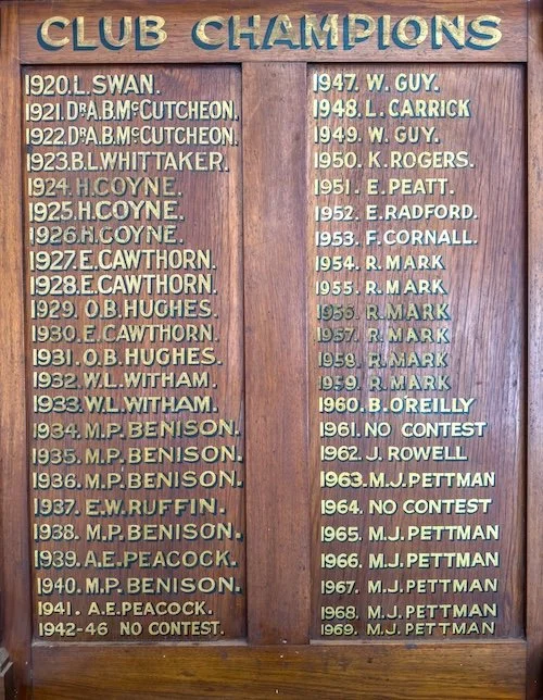 The Fitzroy Tennis Club Championships were first played in 1921 when L. Swan became the first Men’s Singles Champion. Earlier, an annual Singles Handicap championship began in 1909, with A. B. Murphy being the inaugural winner. WW2 caused the Championships to be suspended in the years 1942-46. After the war, in 1947, the FTC championships were resumed with W. Guy being the Men’s Singles winner. The Singles Handicap was last held in 1947.